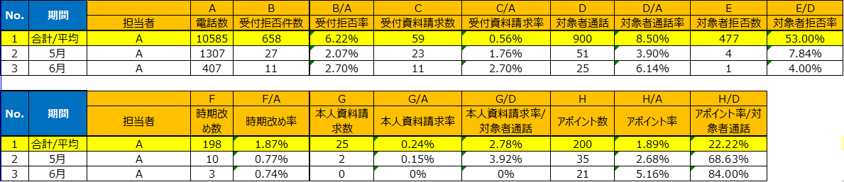 さらに、単月で見るとアポイント率は5%、対象者に繋がれば約85%の確率で社長アポイントを取得していることが分かります。